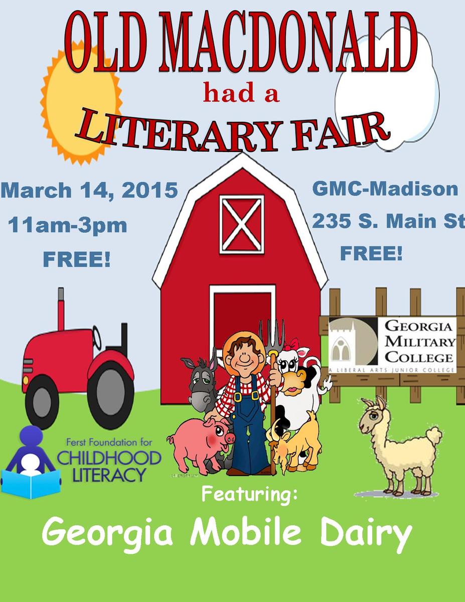 GMC-Madison will host the 2nd Annual Literary Fair on Saturday, March 14 from 11am – 3pm at the campus located at 235 South Main Street. This year’s theme, “Old MacDonald Had a Farm” promises to be a great day of fun and educational opportunities aimed at pre-k and elementary-aged children. Events include the Little Farmyard inflatable playground, a visit by the Mobile Dairy Classroom, free books and registration by the Ferst Foundation, and a number of farm and animal story-related games and activities. The Literary Fair is a FREE activity. Please call Michelle at 706-540-6468 for more information.