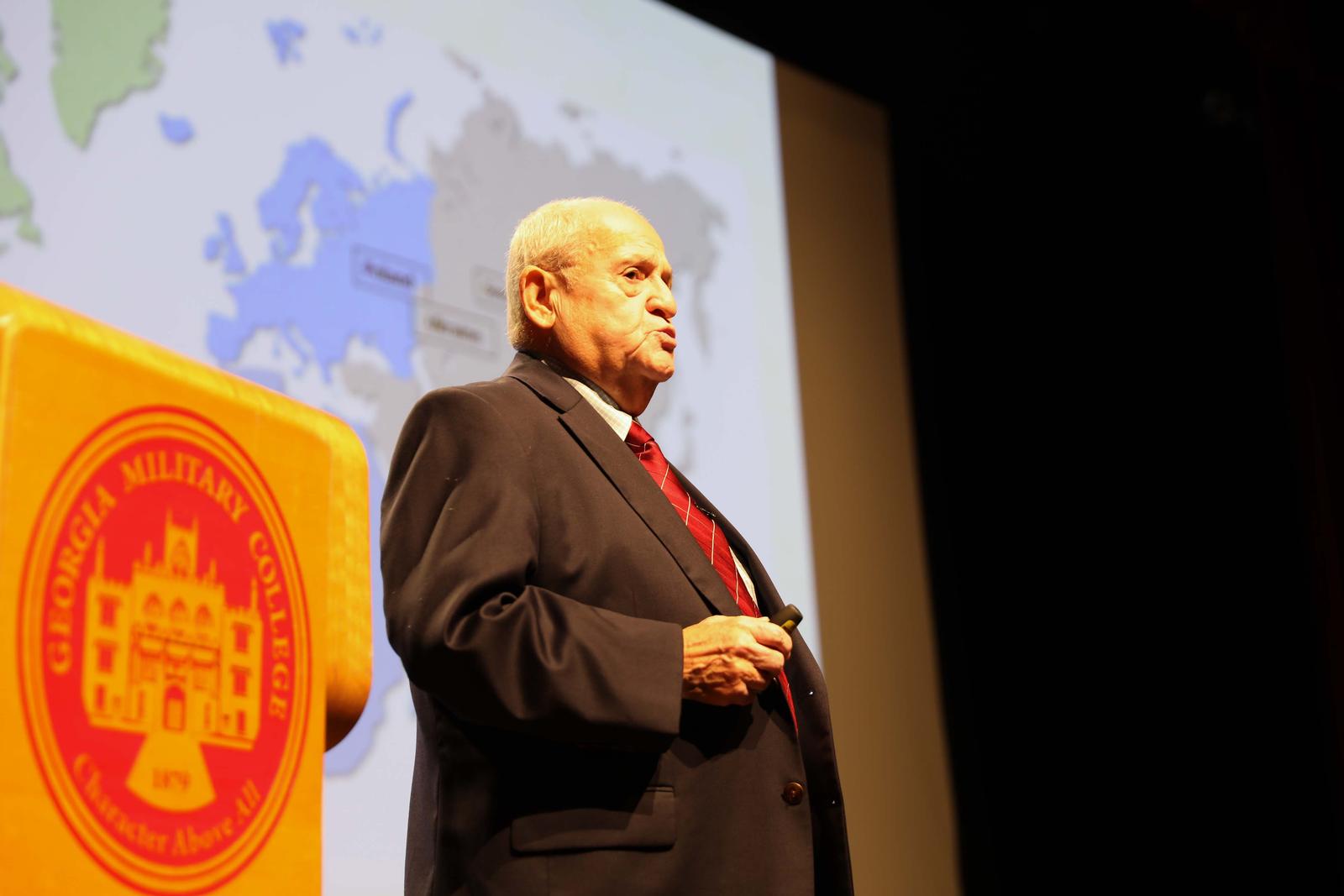 On Wednesday, February 5, 2020, Georgia Military College (GMC) welcomed a Holocaust survivor, Herschel Greenblat, to campus. Students at both GMC Prep School and the college had the opportunity to hear about Greenblat’s experiences in Austria, after World War II. The Georgia Commission (GCH) on the Holocaust presented the event in the Goldstein Center for Performing Arts on GMC’s Milledgeville campus.